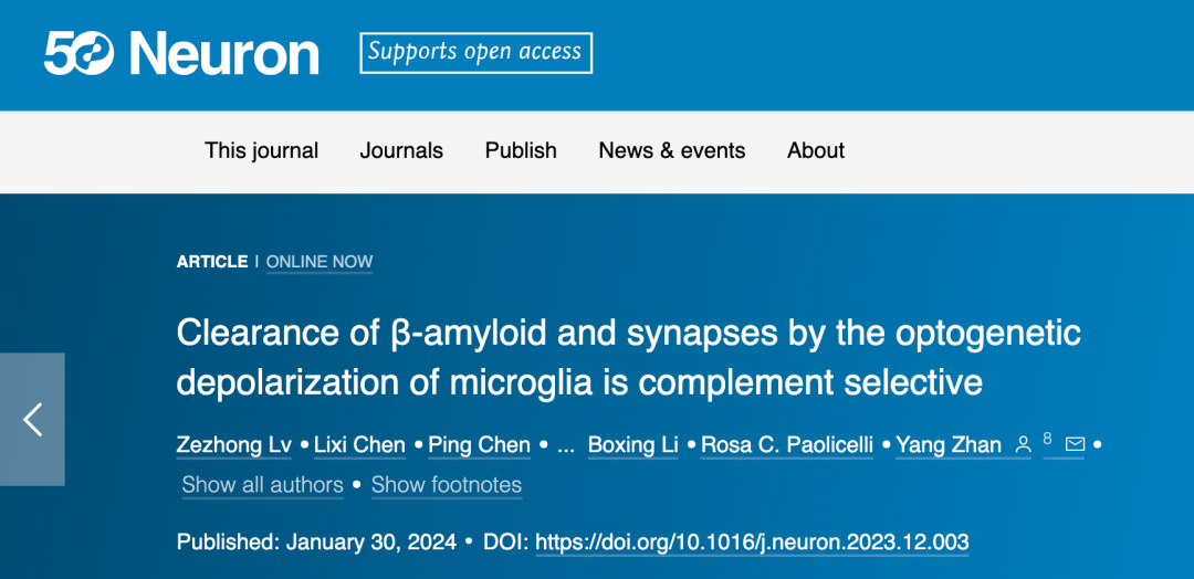 北京时间1月30日,中国科学院深圳先进技术研究院脑认知与脑疾病研究所/深港脑科学创新研究院詹阳研究员团队在Neuron杂志在线发表题为Clearance of β-amyloid and synapses by optogenetic depolarization of microglia is complement selective研究论文。