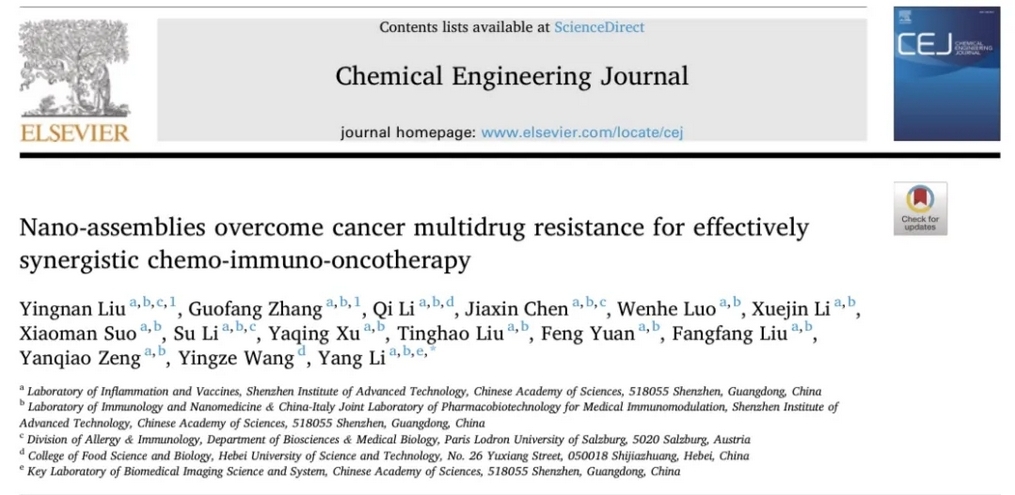 Chemical Engineering Journal | 新型纳米组装体为增强化疗-免疫协同治疗提出新策略