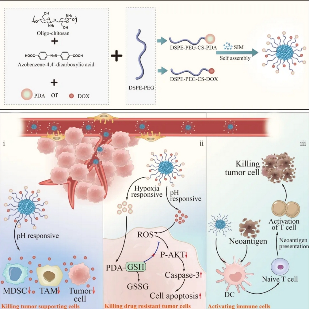 近些年,尽管癌症的治疗手段取得了显著的进步,化疗依然在许多癌症治疗中占据着核心地位。然而,化疗的长期应用往往伴随着多重耐药性 (MDR)的问题,这也对化疗有效性构成了重大挑战。此外,化疗与免疫联合疗法已成为治疗各种晚期癌症的标准方法,若能解决化疗耐药性的问题将有希望大幅度提升患者的生存质量。因此,开发一种有效的、创新的化疗-免疫-协同疗法,以克服化疗耐药,增强协同治疗效果,减少副作用,有效治疗晚期癌症,将极大地造福癌症患者。
