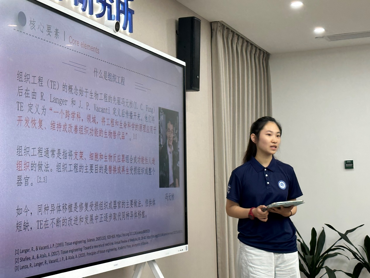 7月15-16日,营员们开启了医药所的深度研学。王怀雨研究员首先介绍了医药所的概况,之后医药人工智能研究中心、纳米医疗技术研究中心、蛋白与细胞药物研究中心、人体组织与器官退行性研究中心分别介绍了中心情况。同学们认真听取报告,并与主讲老师展开交流,进一步了解了医药所各个研究中心在科研、学生培养方面的进展及成果。