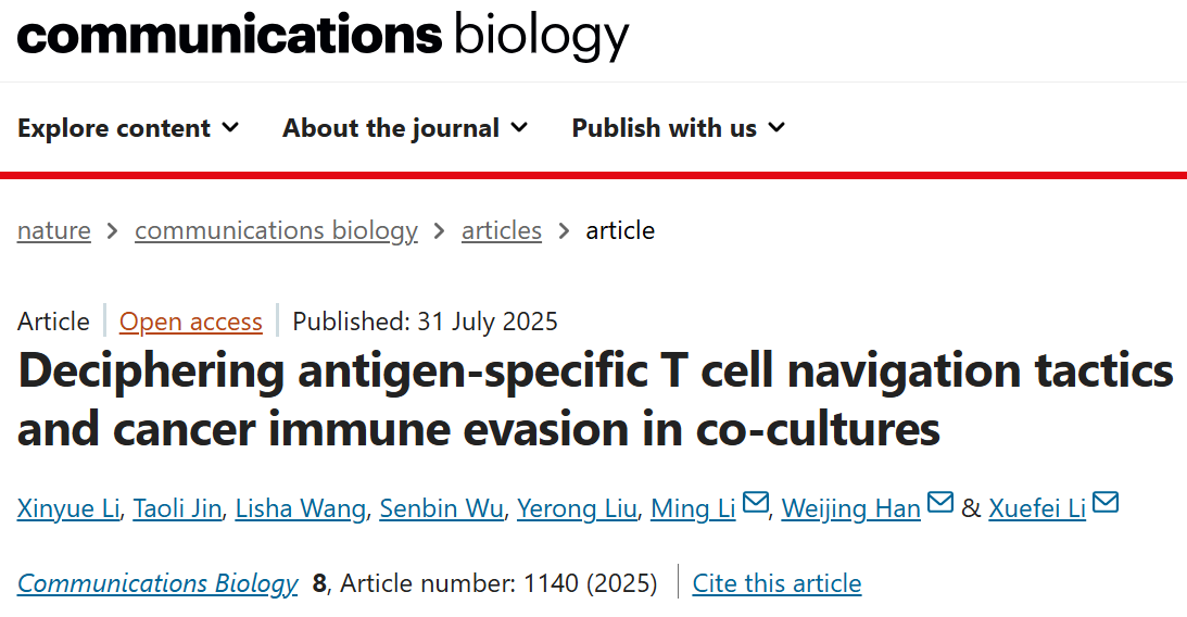一、揭示抗原特异性T细胞在肿瘤共培养环境中的导航策略与肿瘤免疫逃逸机制(Communications Biology