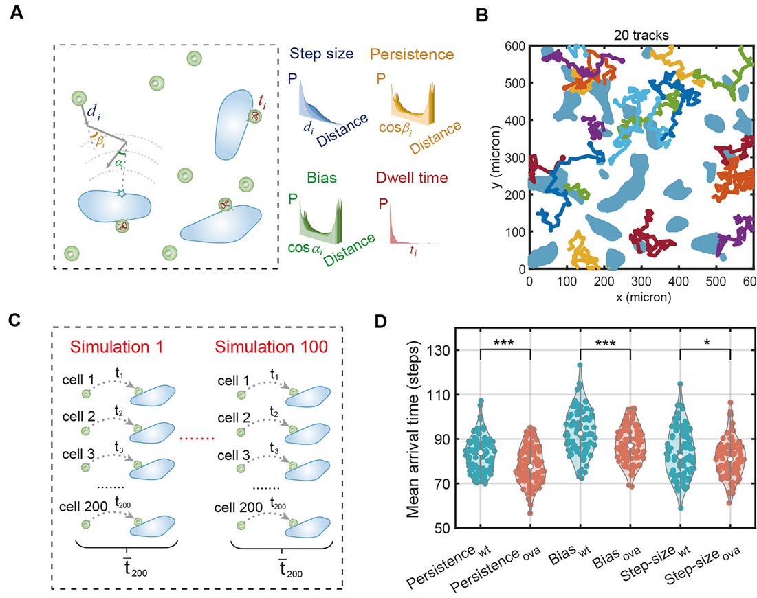 2. 实验结合计算建模,揭示T细胞搜寻策略与聚集关键机制