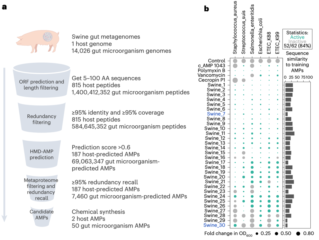 图3. 对猪肠道微生物组和宿主基因组进行AMPs挖掘