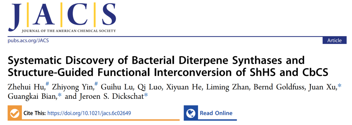 2026年3月16日,中国科学院深圳先进技术研究院定量合成生物学全国重点实验室、合成生物学研究所卞光凯团队联合华中农业大学徐娟课题组和波恩大学Jeroen S. Dickschat课题组,在国际期刊Journal of the American Chemical Society上发表了题为《Systematic Discovery of Bacterial Diterpene Synthases and Structure-Guided Functional Interconversion of ShHS and CbCS》的最新研究成果。该研究通过系统挖掘细菌二萜合酶,显著拓展了细菌二萜天然产物的化学空间,并揭示了活性中心微环境对产物骨架分化的决定作用。